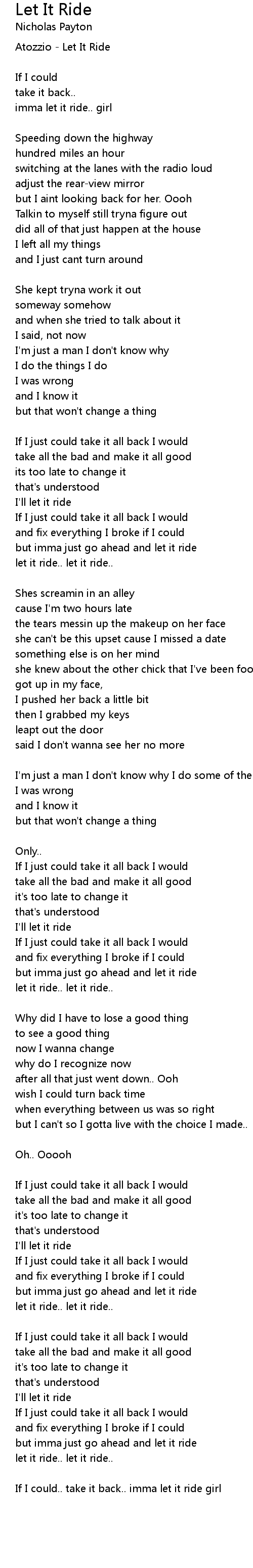 If I could.. take it back.. imma let it ride girl |