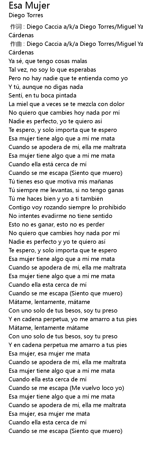 | [00:01.000] | zuo qu : Diego Caccia a k a Diego Torres Miguel Yadam Gonza lez Ca rdenas |
