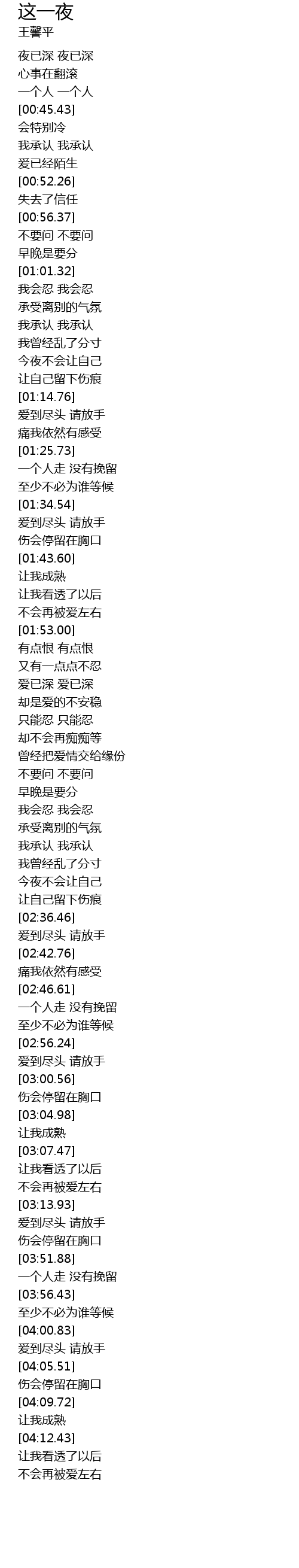 | [00:43.28] | yí ge rén yí ge rén |