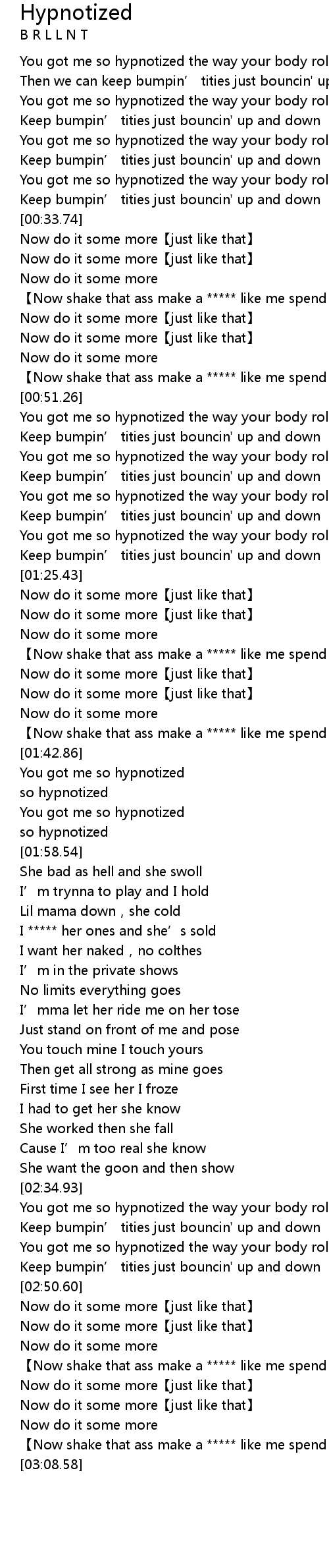 | [00:52.35] | You got me so hypnotized the way your body rollin' round and round |