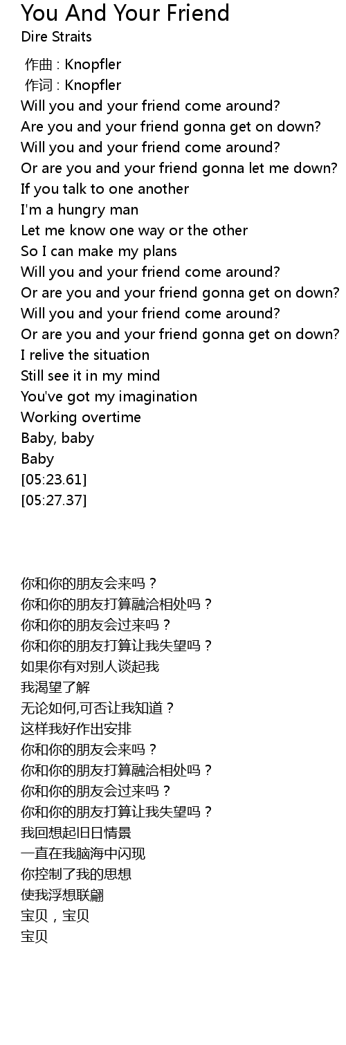 | [02:36.10] | Will you and your friend come around? |