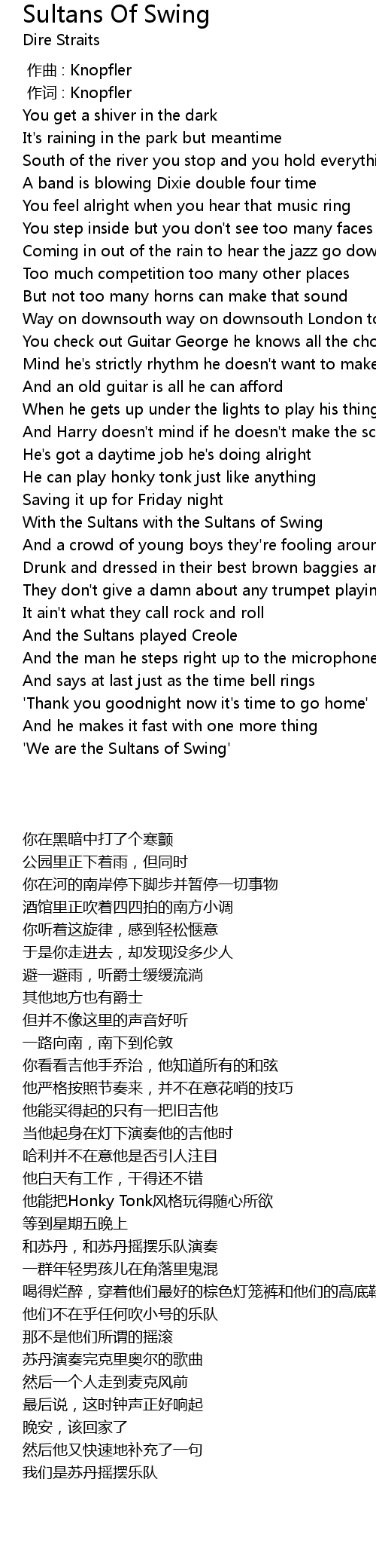 | [04:39.50] | 'We are the Sultans of Swing' |