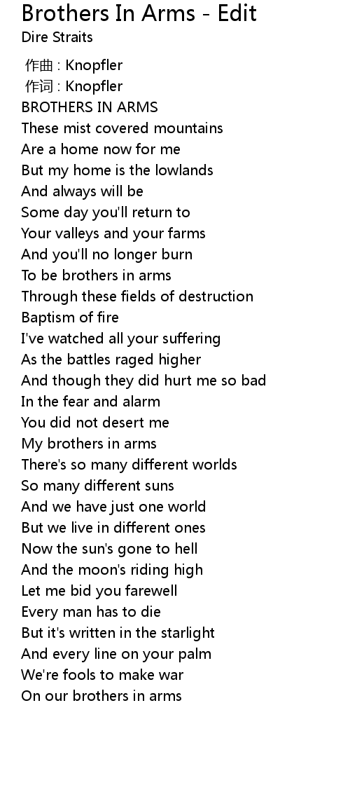 | [01:02.55] | To be brothers in arms |