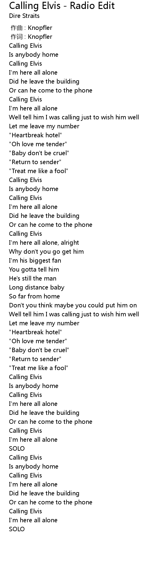 | [00:47.55] | Calling Elvis |