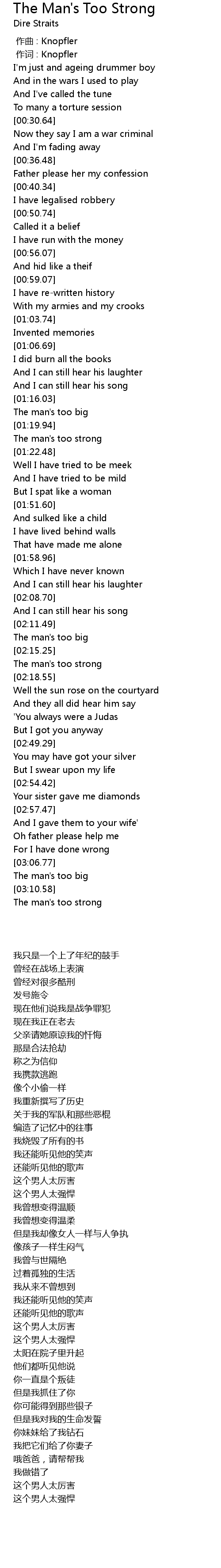| [00:01.00] | 作词 : Knopfler |