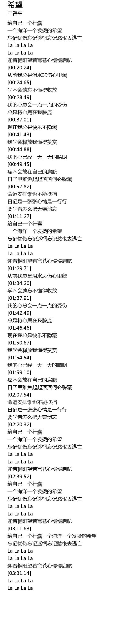| [03:13.01] | 给自己一个行囊一个海洋一个发烫的希望 |