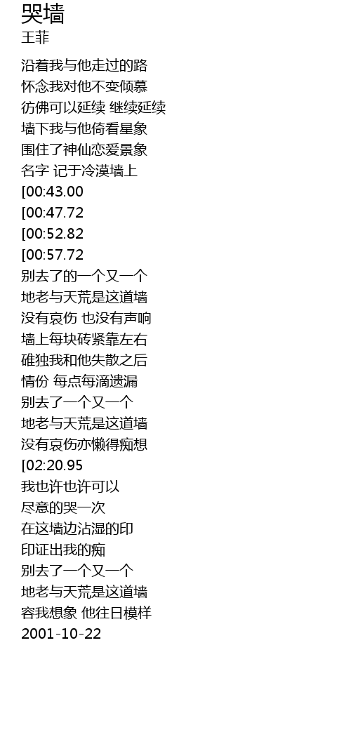| [02:05.30] | 地老与天荒是这道墙 |