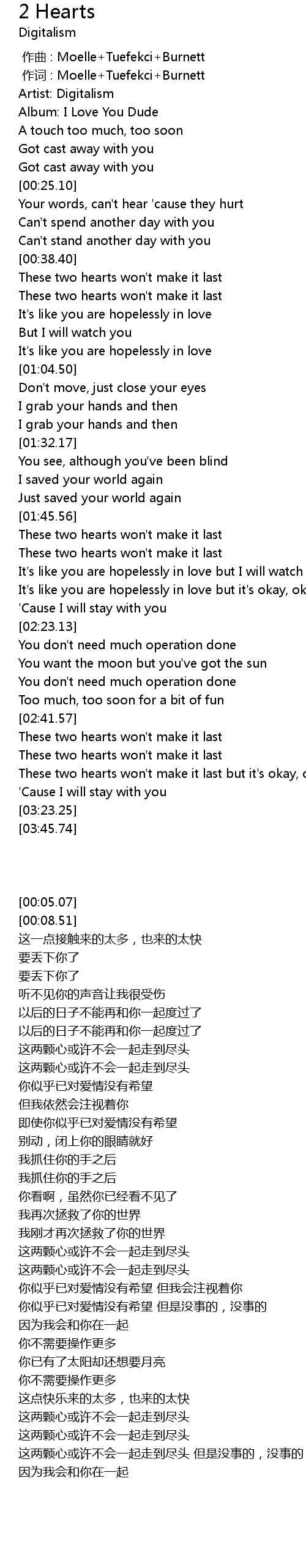 | [00:01.00] | 作词 : Moelle+Tuefekci+Burnett |