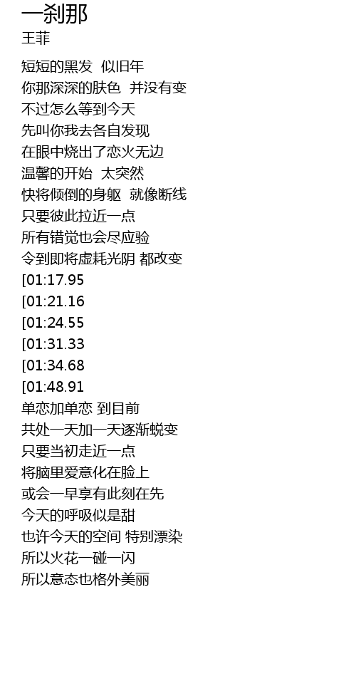 | [02:58.95][01:17.95] | 在这短短的一刹那 |