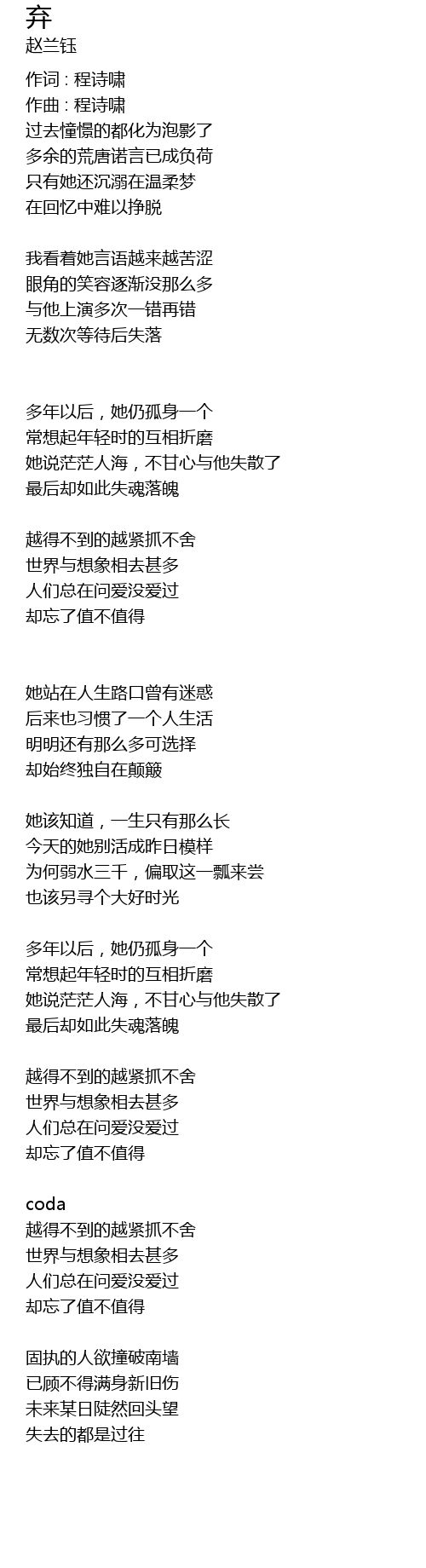 | duo nian yi hou, ta reng gu shen yi ge | |