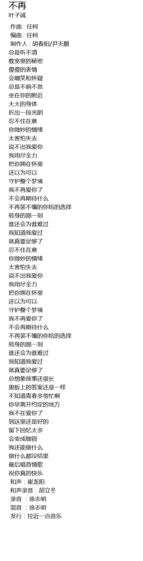 | [04:17.214] | 和声录音:胡立冬 |