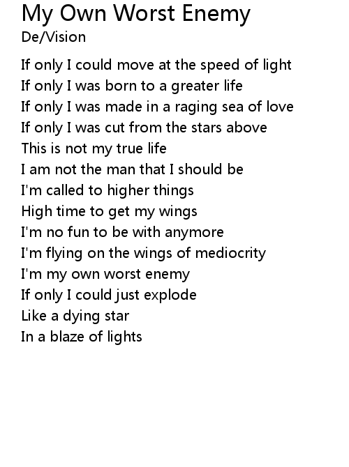 | I'm my own worst enemy | |