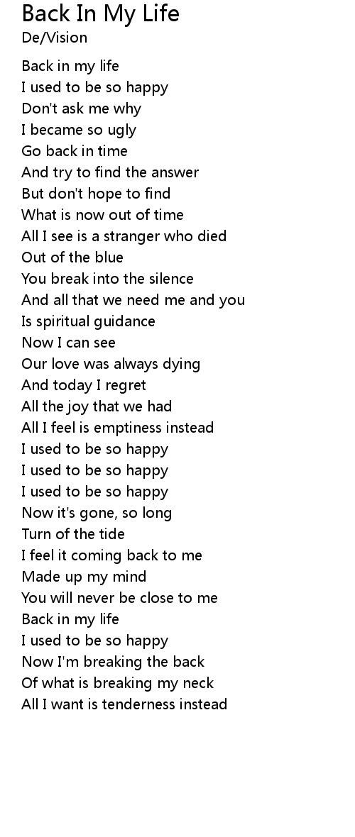 | Back in my life | |