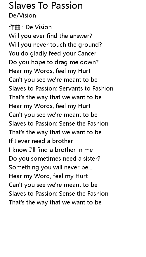 | Slaves to Passion Servants to Fashion | |