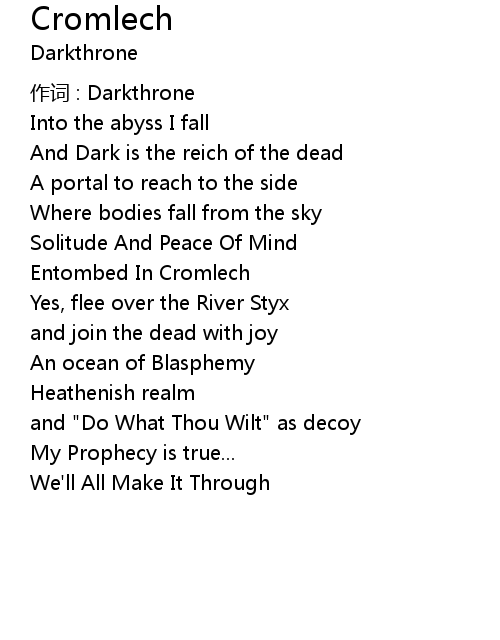 | 作词 : Darkthrone | |