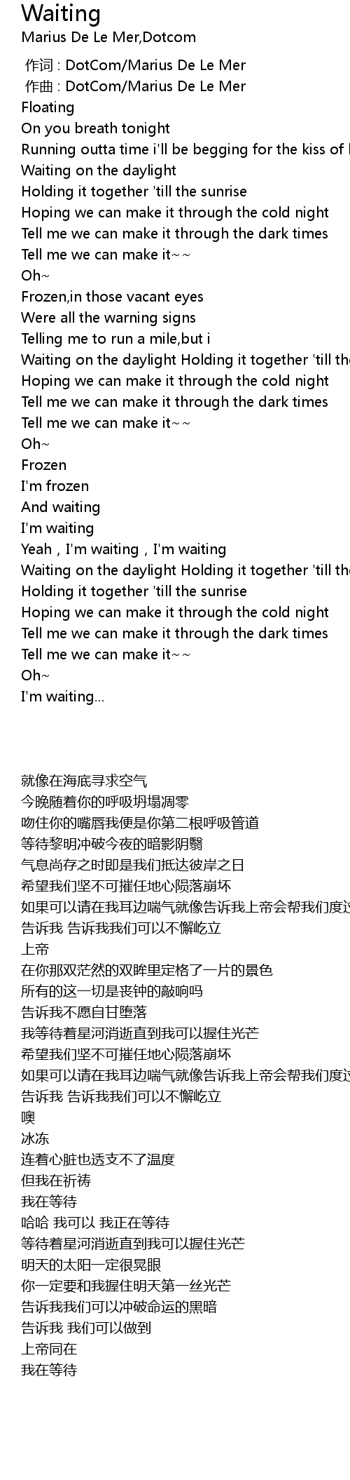 | [00:00.000] | 作词 : DotCom/Marius De Le Mer |
