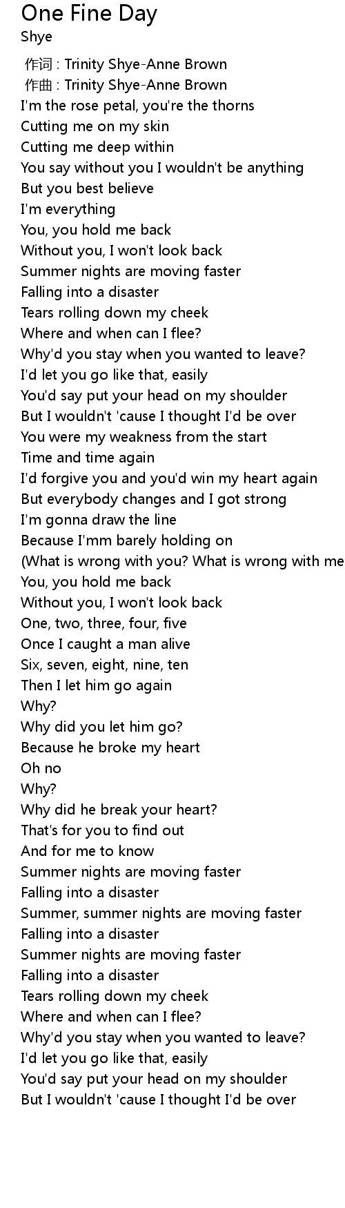 | [00:00.000] | 作词 : Trinity Shye-Anne Brown |