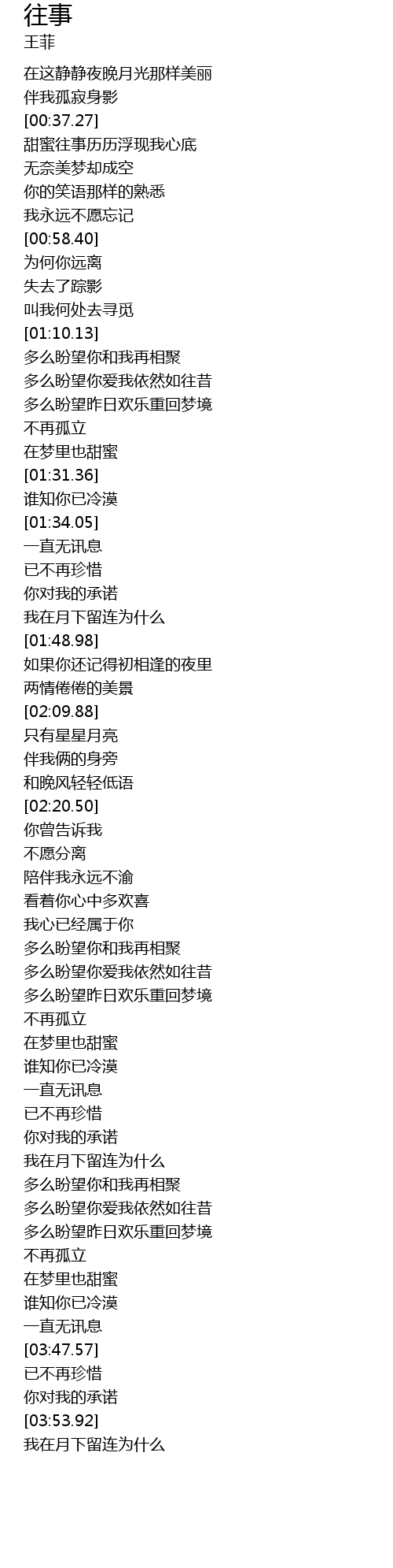 | [00:38.09] | 甜蜜往事历历浮现我心底 |