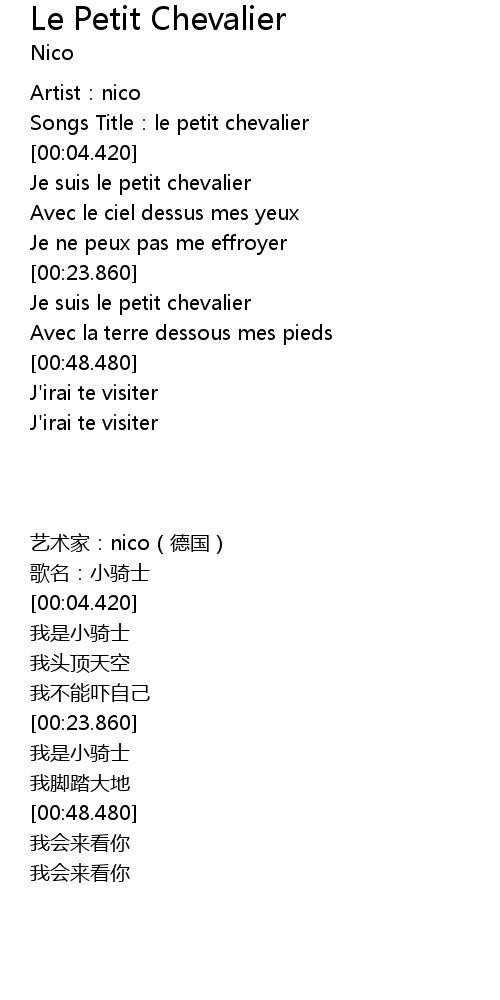 | [00:02.770] | Songs Title:le petit chevalier |