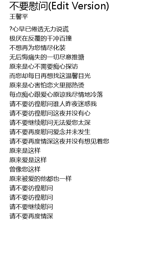 | 请不要继续慰问无法爱您太深 | |
