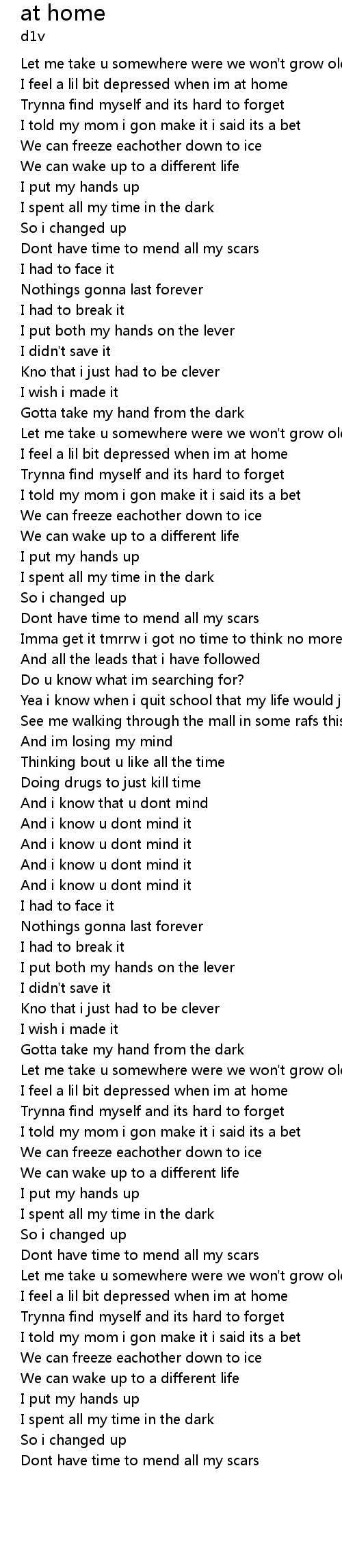 | [00:19.03] | I feel a lil bit depressed when im at home |