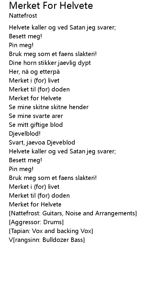 | Song | Merket For Helvete |