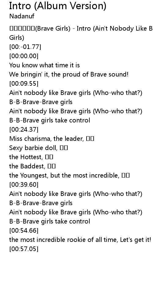 | [00:-07.04] | Brave Girls Intro Ain' t Nobody Like Brave Girls |