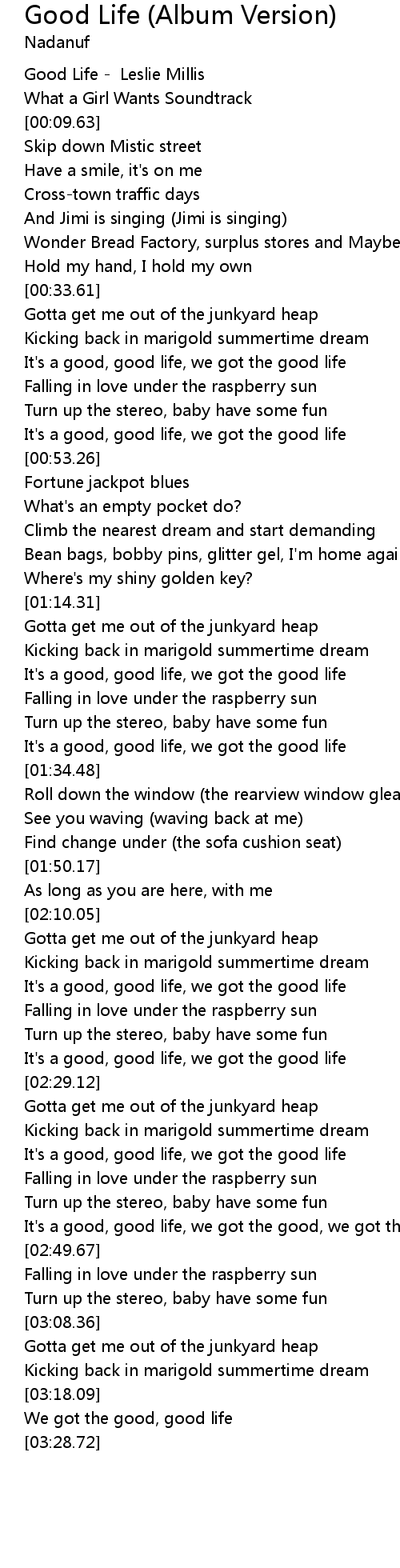 | [00:02.31] | Good Life - Leslie Millis |