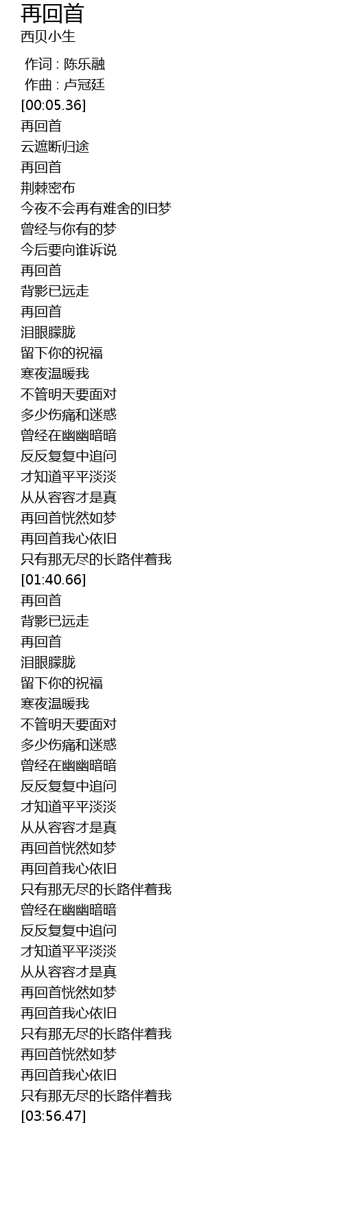 | [02:16.51] | 再回首 |