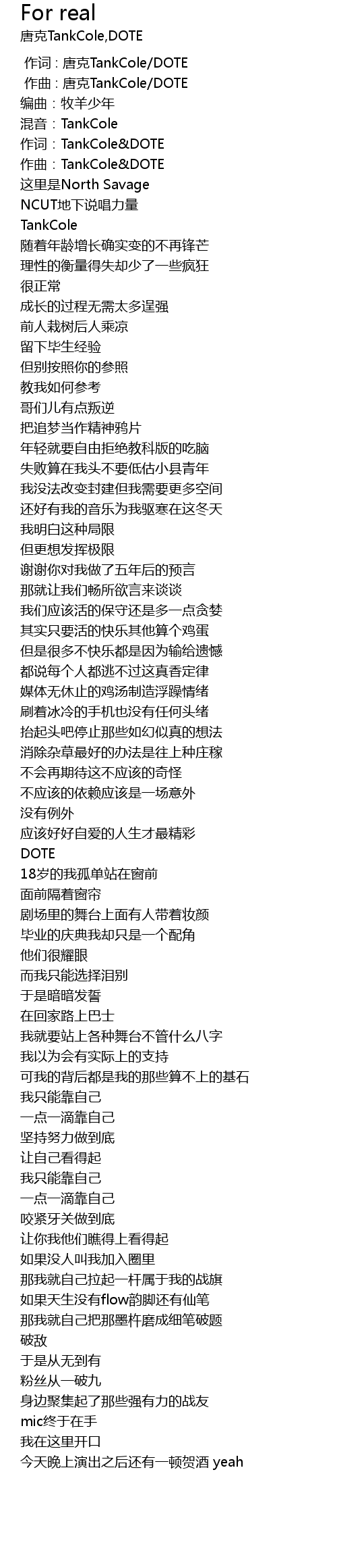 | [00:00.000] | 作词 : 唐克TankCole/DOTE |