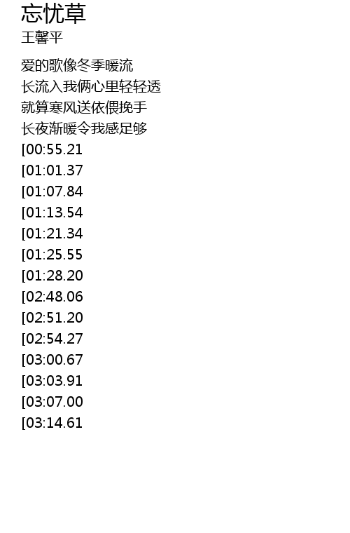 | [02:23.61][01:07.84] | 像那忘忧草解开困忧 |