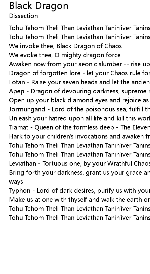 Tohu Tehom Theli Than Leviathan Tanin'iver Taninsam! |