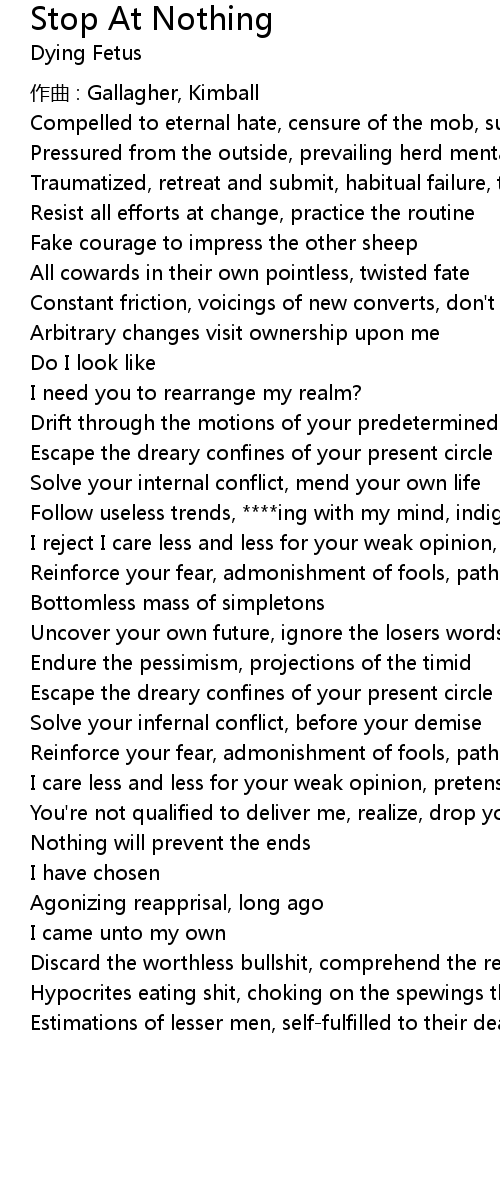 | Follow useless trends, ****ing with my mind, indignant lies that | |