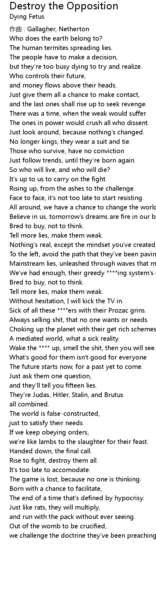 | Song | Destroy the Opposition |