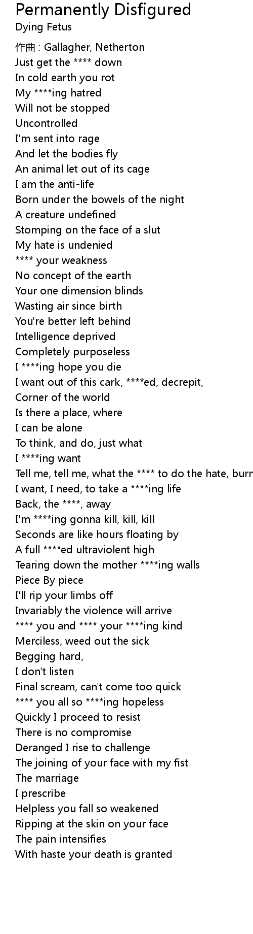 | Song | Permanently Disfigured |