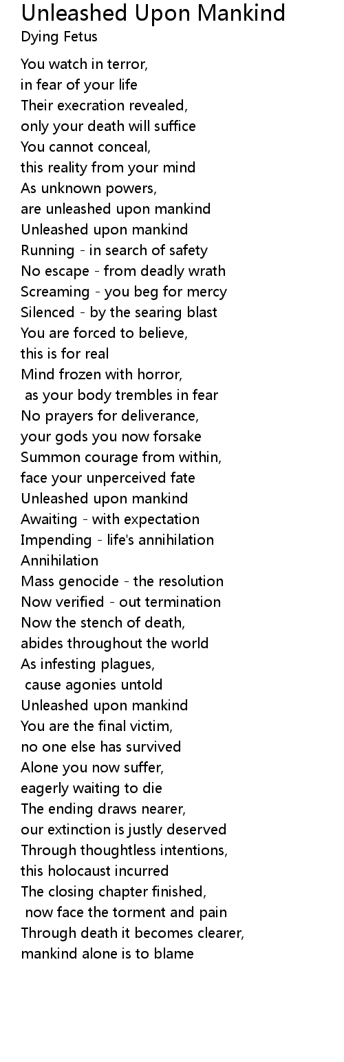 Unleashed upon mankind |