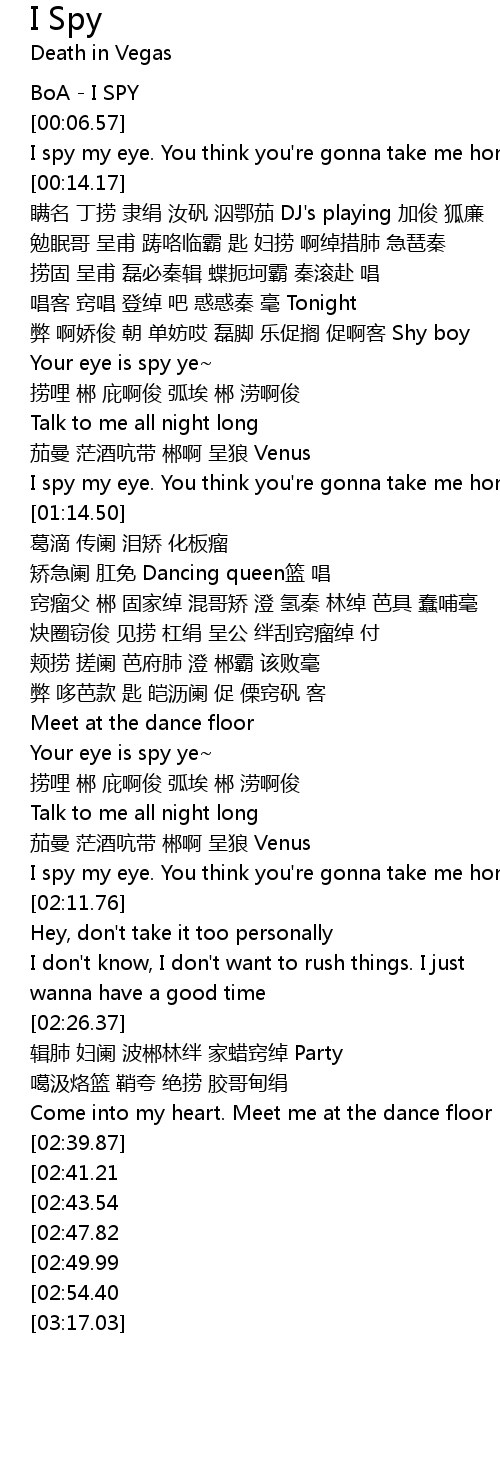 | [02:59.19][02:41.21] | Your eye is spy ye |