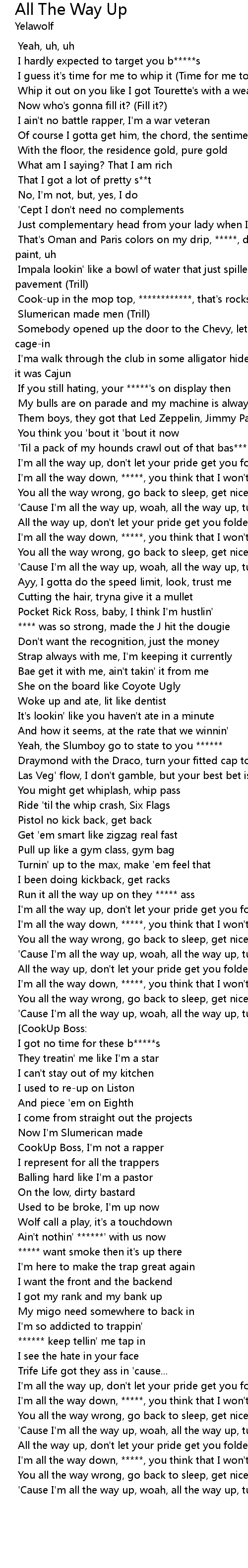 'Cause I'm all the way up, woah, all the way up, turnt |