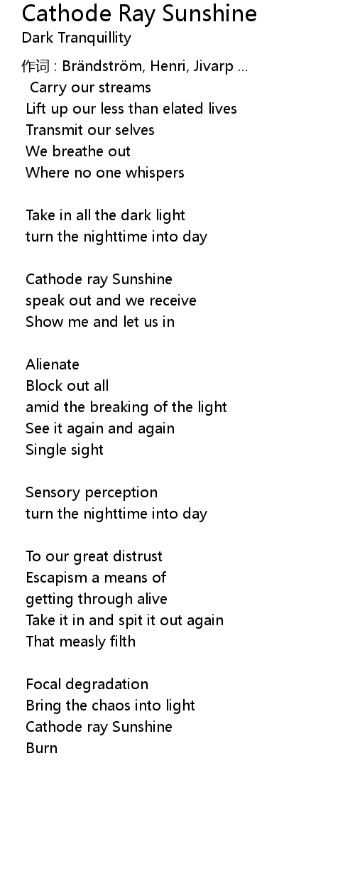 | Cathode ray Sunshine | |
