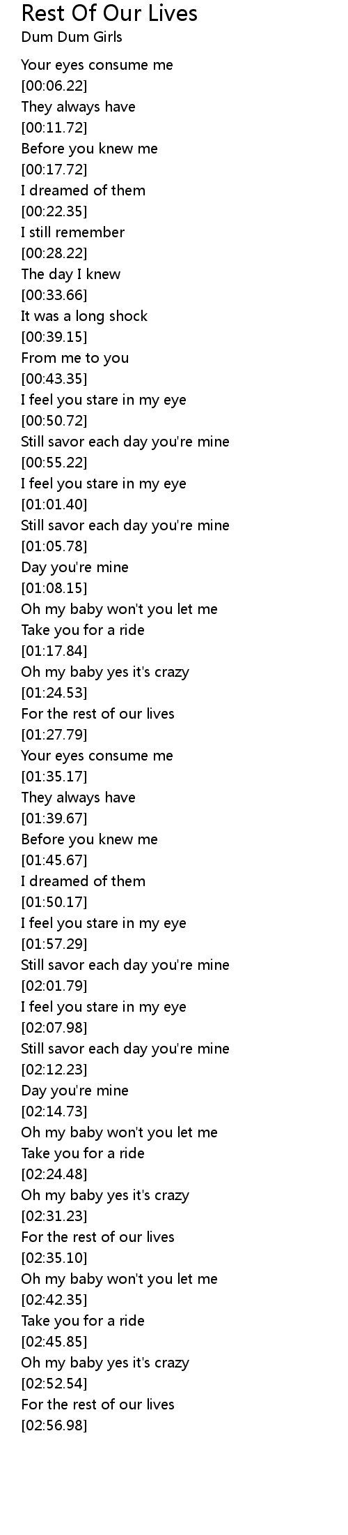 For the rest of our lives |