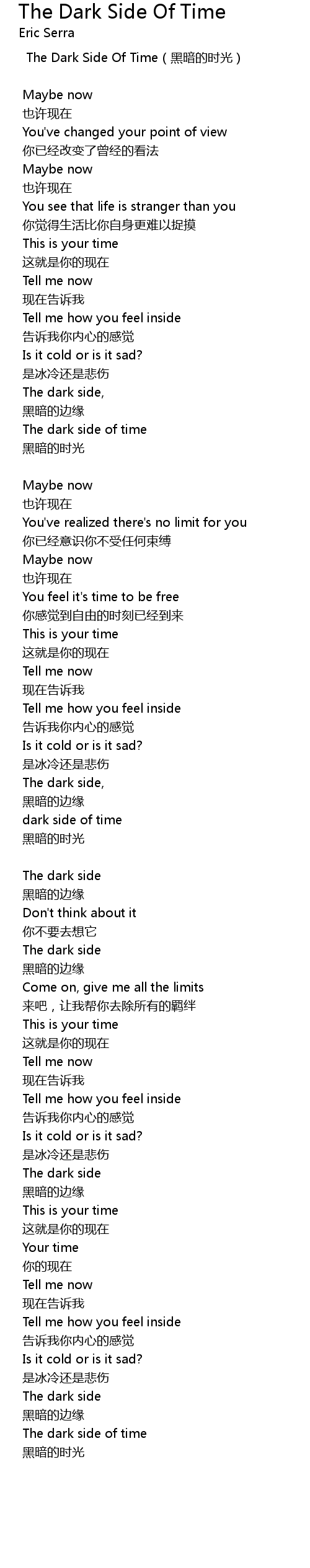 | The Dark Side Of Time(黑暗的时光) | |