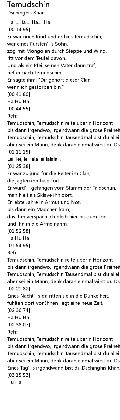 | [01:55.79] | Temudschin, Temudschin reite uber`n Horizont |