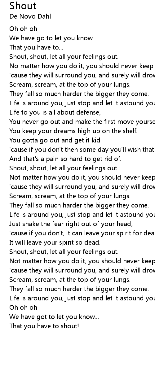 Shout, shout, let all your feelings out. |