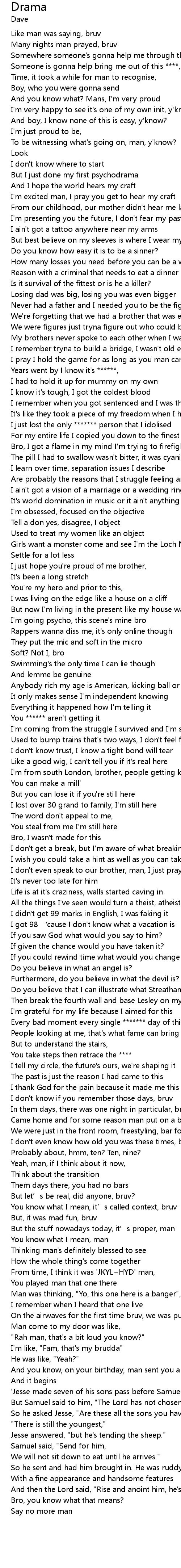 | [03:36.68] | I don't even speak to our brother, man, I just pray for him |