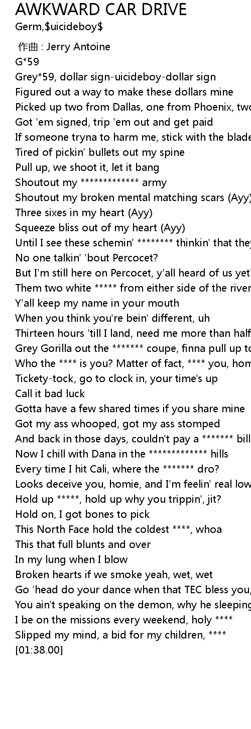 | [00:49.41] | Grey Gorilla out the ******* coupe, finna pull up to the zoo |