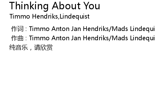 | [00:01.000] | zuo qu : Timmo Anton Jan Hendriks Mads Lindequist Nielsen |