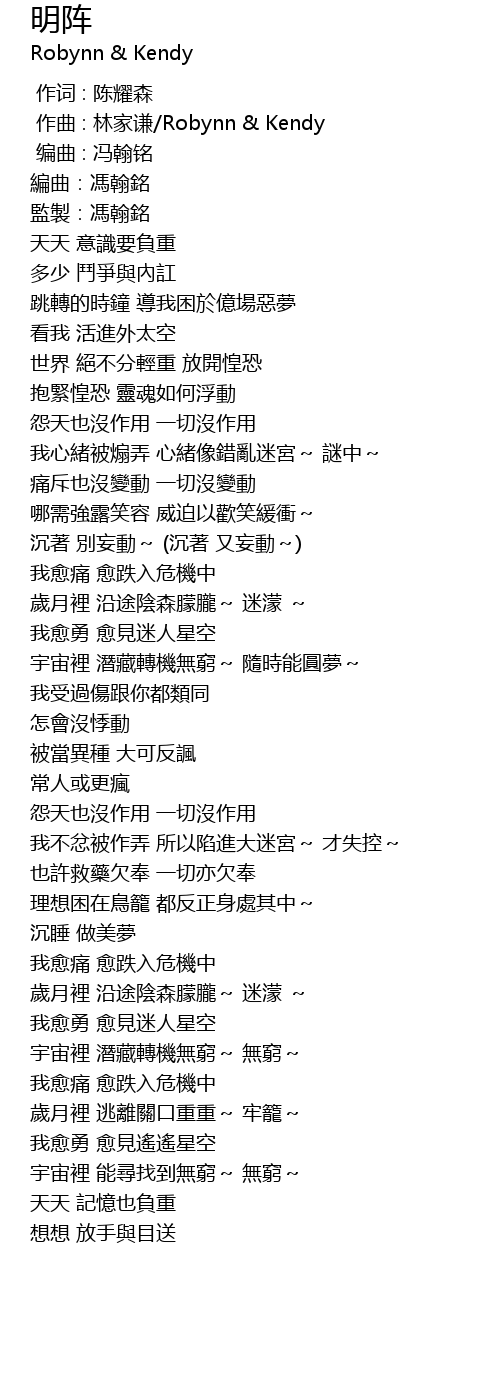 | [03:11.64] | 我愈勇 愈見遙遙星空 |