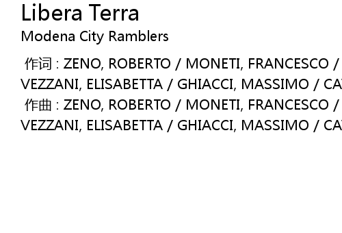 | [00:00.000] | 作曲 : ZENO, ROBERTO / MONETI, FRANCESCO / D'ANIELLO, FRANCO / VEZZANI, ELISABETTA / GHIACCI, MASSIMO / CAVAZZUTI, ARCANGELO / MORANDI, DAVIDE |