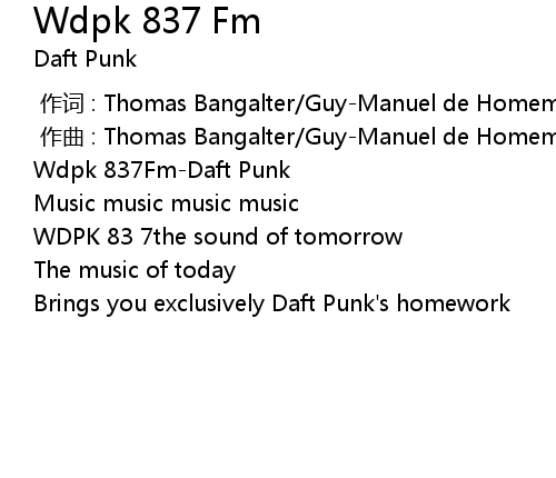 | [00:00.330] | Wdpk 837Fm-Daft Punk |