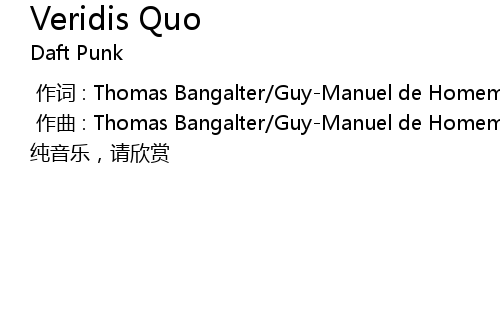 [00:00.000] 作词 : Thomas Bangalter/Guy-Manuel de Homem-Christo